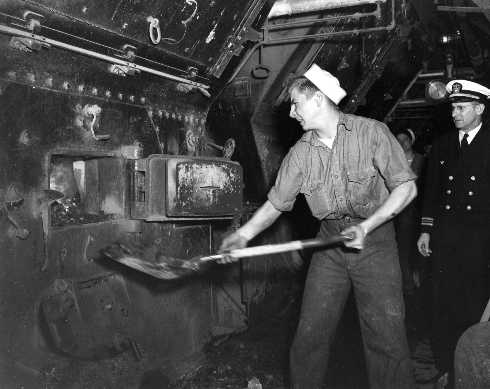 Sailor stokes the engine on the USS Sable.