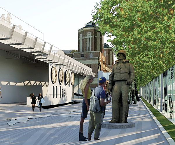 View of the external walkway that will run the full length of the memorial structure